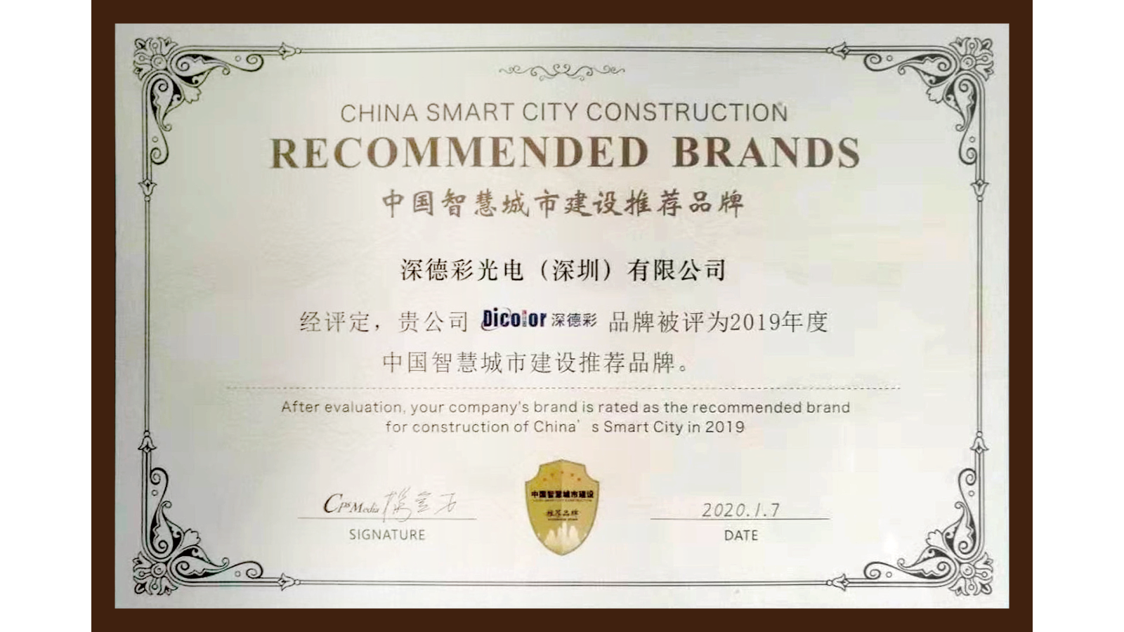 2019年度中國(guó)智慧城市建設(shè)推薦品牌獎(jiǎng)