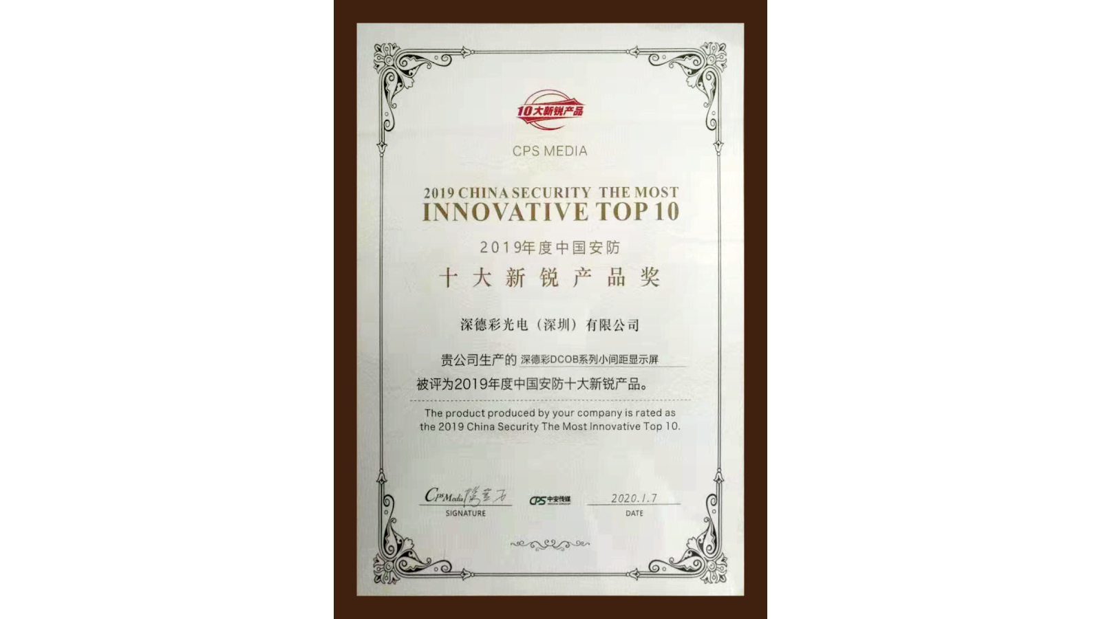 2019年度中國(guó)安防十大新銳產(chǎn)品獎(jiǎng)