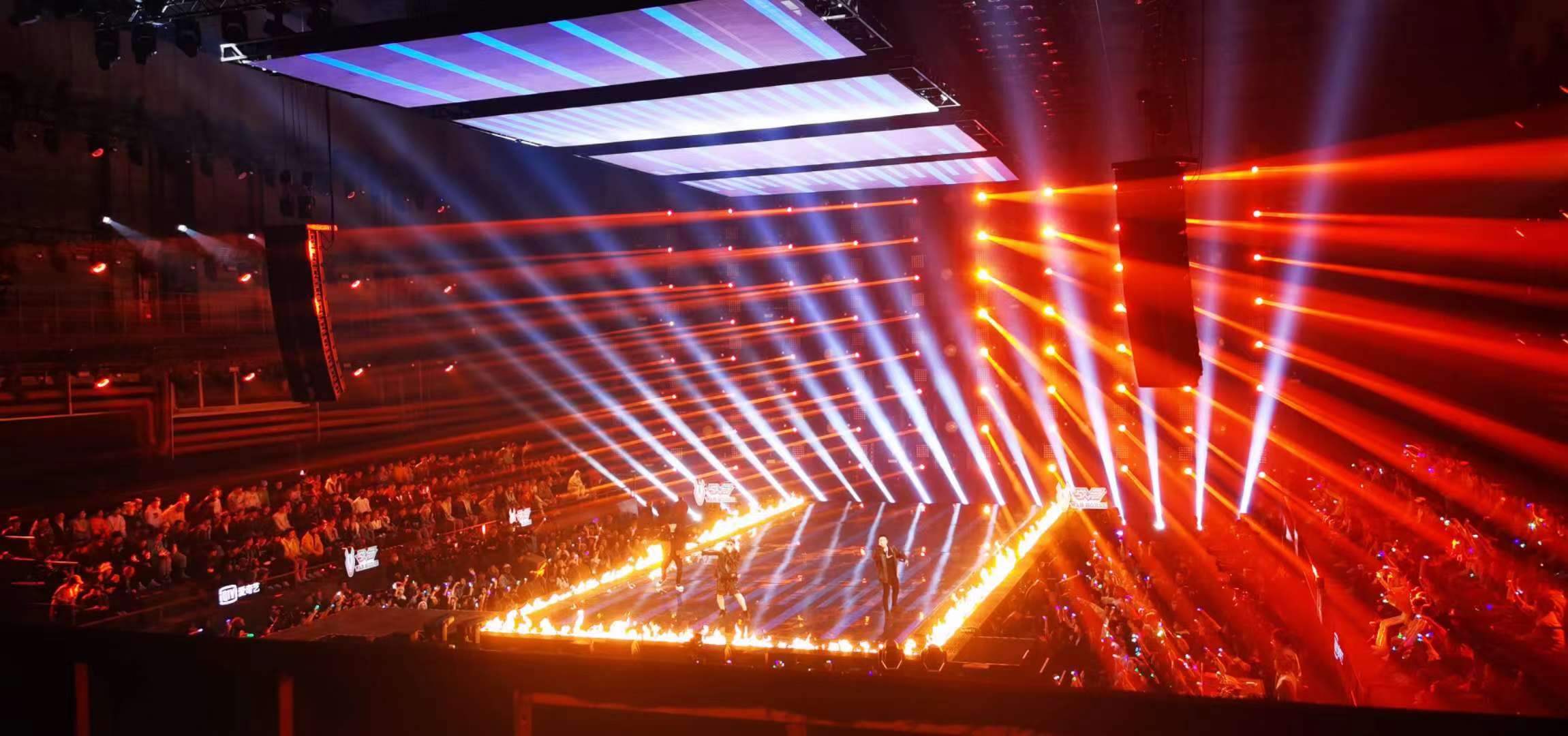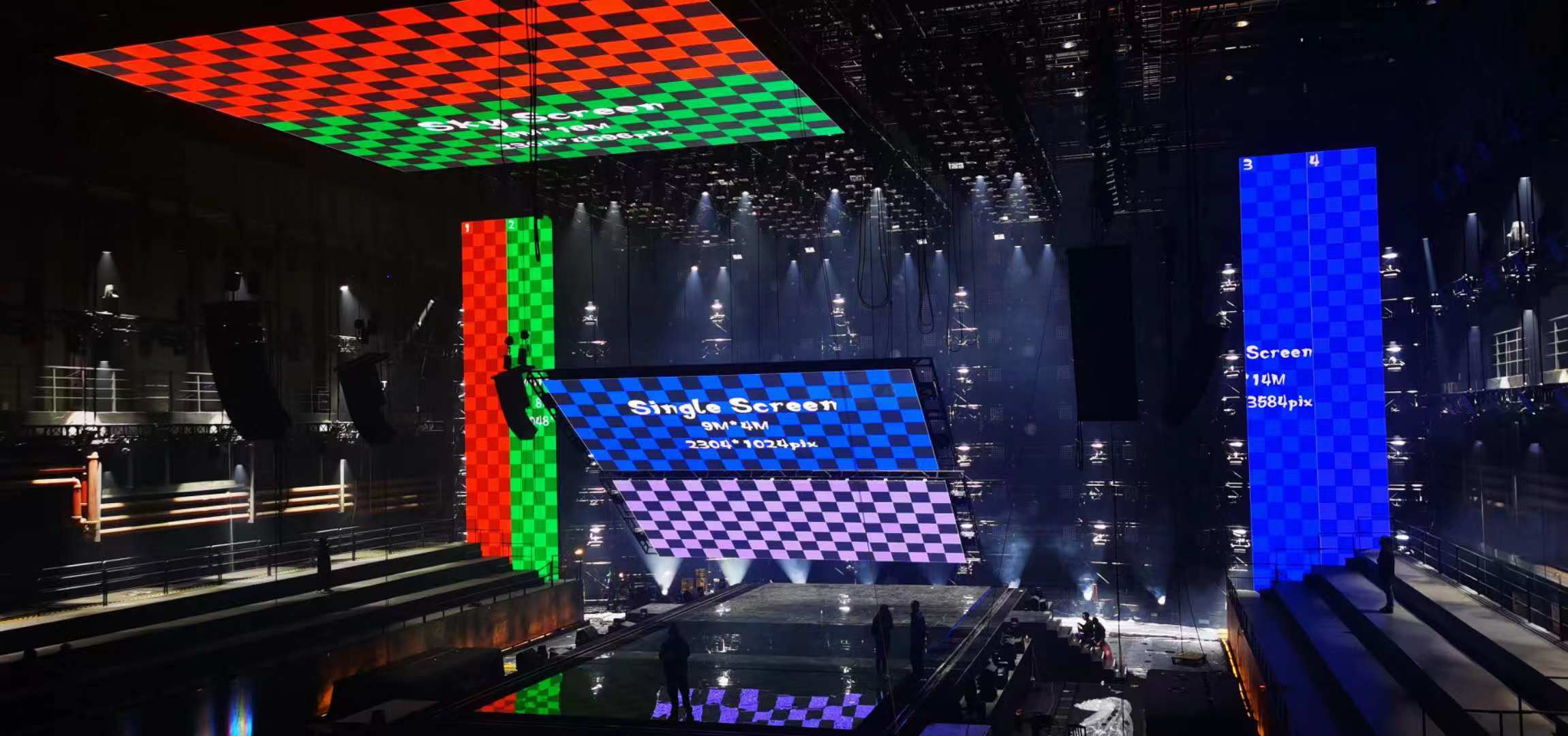 本次決賽現場主舞臺設計可謂簡約而不簡單:主舞臺大屏、地磚屏、天幕屏采用了深德彩D系列與DP系列大屏共700余方,運用多種吊裝方式、拼接方式、結合升降臺等機械設施,讓整個舞臺造型百變呈現,與酷炫的舞臺效果、燈光效果、音響效果相得益彰。