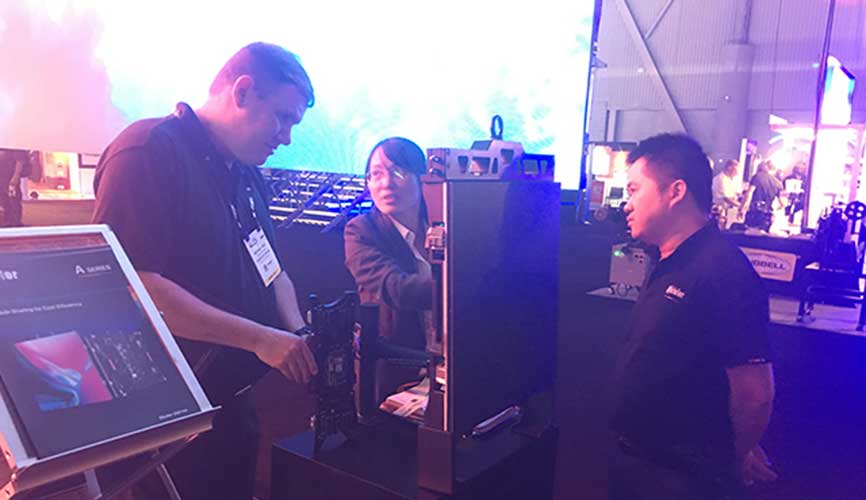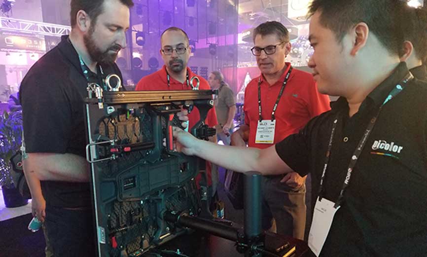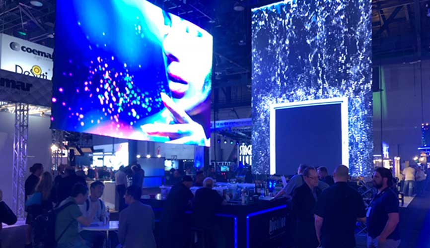 本次展會(huì)我司利用有限的展位面積展示了兩款非凡的產(chǎn)品:AF系列和MA系列?,F(xiàn)場(chǎng)吊裝的AF系列憑借著人性弧形鎖設(shè)計(jì)、模塊化設(shè)計(jì)等特點(diǎn),營(yíng)造了創(chuàng)意舞臺(tái)效果,讓廣大體驗(yàn)者近距離感受屏幕傳遞出的藝術(shù)感與科技感。