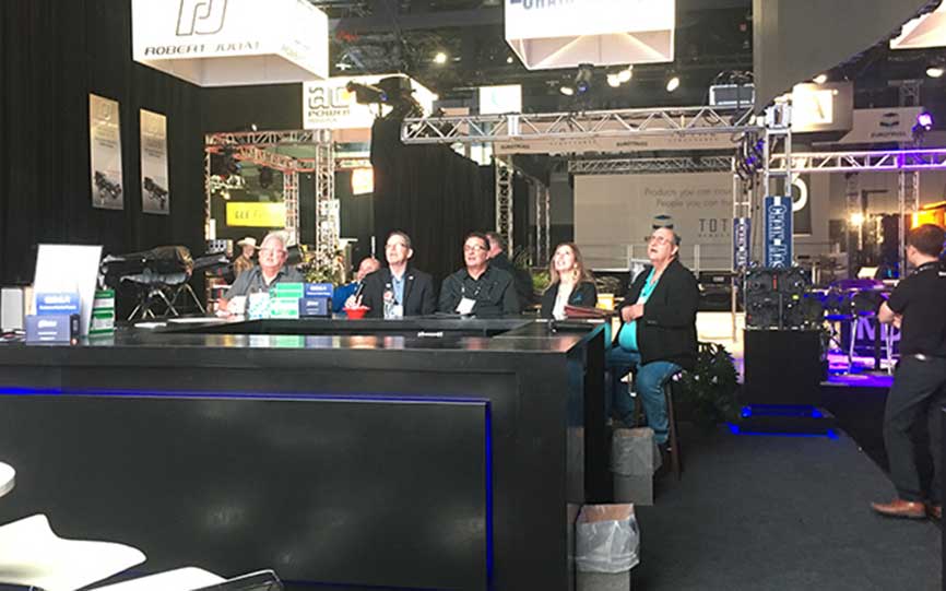 放眼全館最矚目的莫過(guò)于德彩展位,一張環(huán)形吧臺(tái)讓客戶(hù)仿佛置身于酒吧中,使身心得以放松;兩塊吊裝的LED屏,讓大家遠(yuǎn)遠(yuǎn)地就可以看到展品;展位一隅擺放樣箱,客戶(hù)可以在專(zhuān)業(yè)人員的引導(dǎo)下查看箱體細(xì)節(jié),熟悉箱體的拆裝步驟等以便客戶(hù)對(duì)產(chǎn)品有更加深入的了解;些許飲品幾張坐席給駐足的客戶(hù)提供溝通與探討的機(jī)會(huì)。
